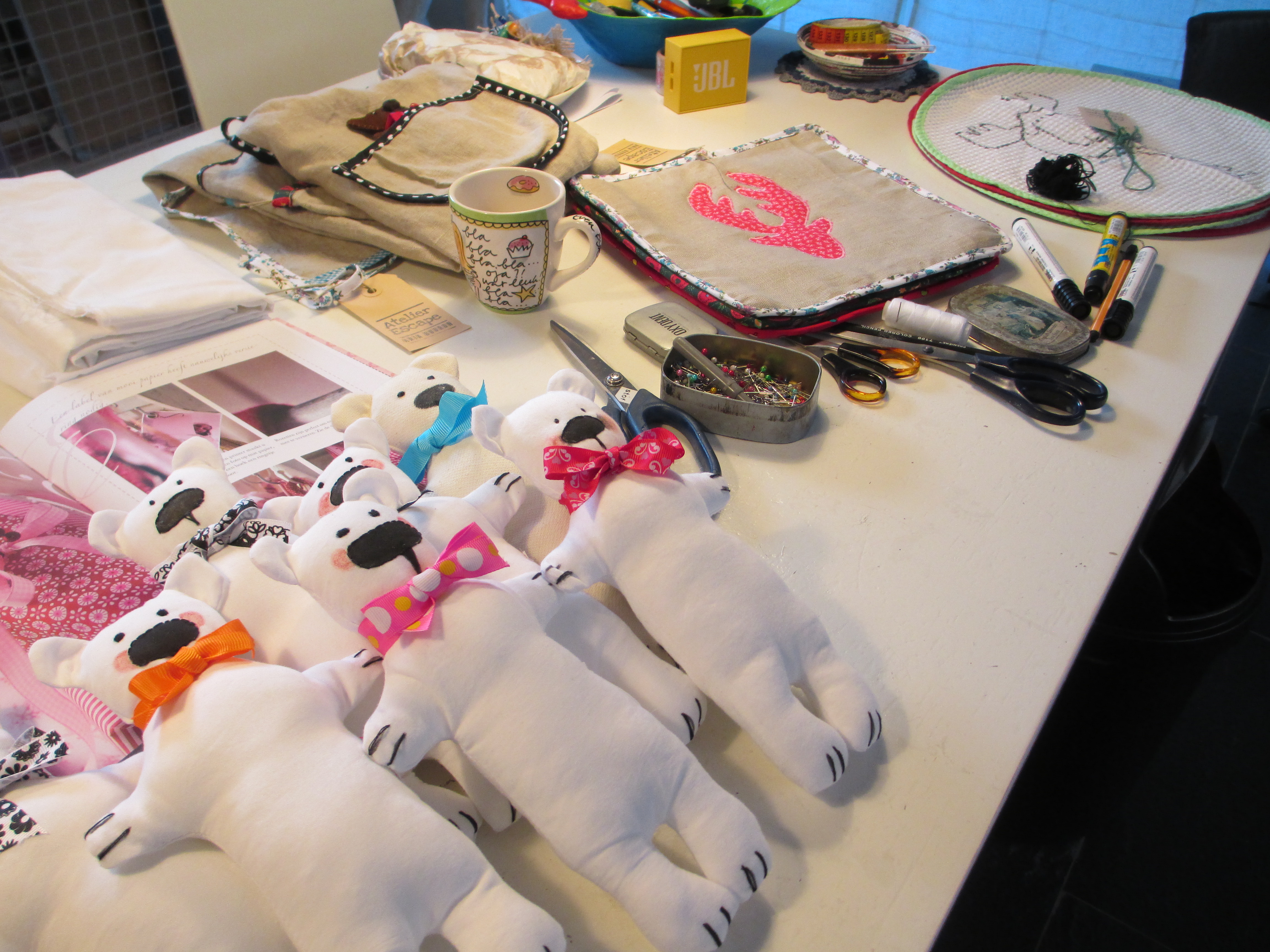 Van ijsbeertjes …onderzetters…place mats….schorten…. elandjes van hout…ovenwanten …kaarten…