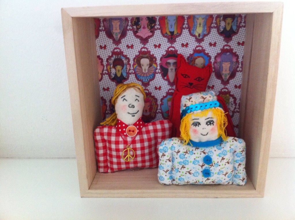 Blog Kijkkastjes Kijkkastje Kijkkastje Kijkdoos met tafereeltjes van popjes,beestje gemaakt van textiel 27 september 2014 In: Kijkkastjes