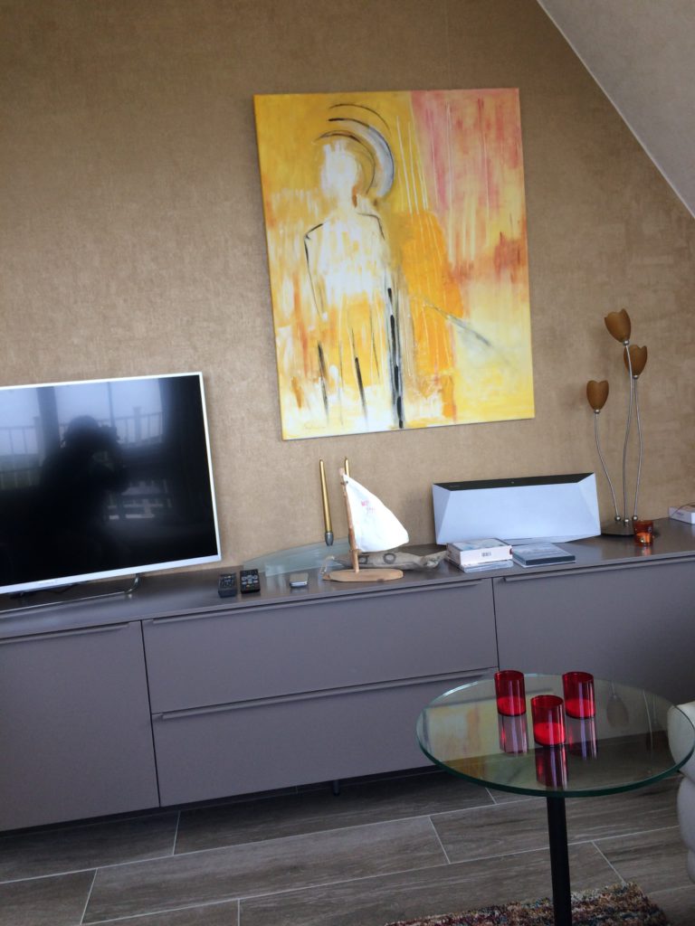 Blog Geen categorie Schilderij in een appartement aan de kust in Belgie Schilderij in een appartement aan de kust in Belgie Gisteren bij vrienden op bezoek, ze hebben een appartement aan de Belgiese kust… En wat zie ik daar hangt een schilderij van mij… op de foto zie je niet zo de kleuren.. maar het was een mooi plaatje… 21 mei 2016 In: Geen categorie